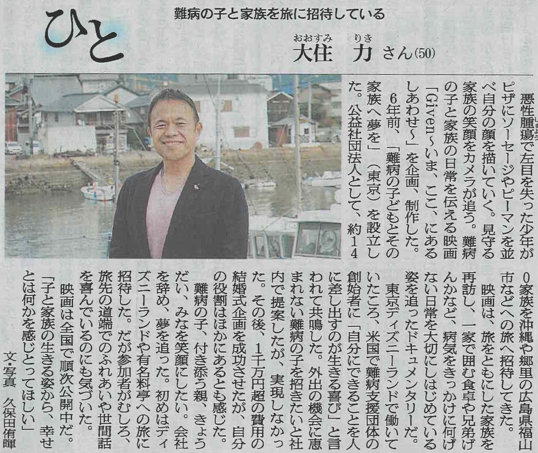 4月22日の朝日新聞朝刊「ひと」の欄に、この映画の企画・総指揮でもある大住力が掲載されました!